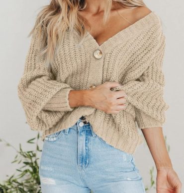 Women Chunky Knit Open Front Sweater Long Sleeve Button Loose Short Cardigan Outerwear Coats