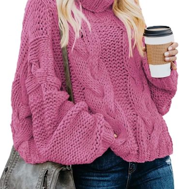 Women Chunky Knit Winter Sweaters Casual Long Sleeve Mock Neck Oversized Loose Pullover Sweater Tops