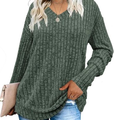 Women Sweatshirts V Neck Long Sleeve Shirts Loose Casual Fall Fashion Sweaters S-2XL