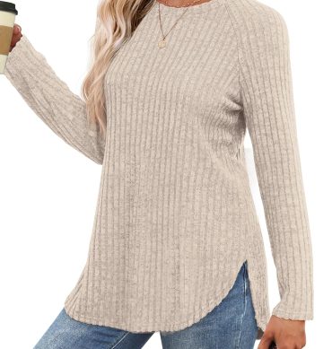 Long Sleeve Shirts for Women Tunic Tops for Women Loose Fit Dressy Crew Neck Pullover Basic Sweaters for Women