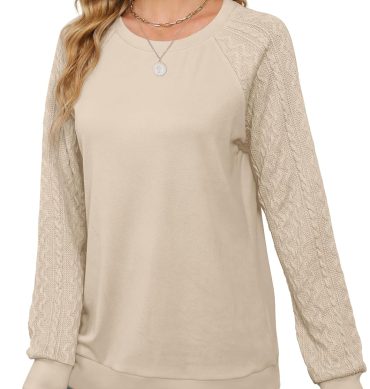 Sweatshirts for Women Crewneck Cable Knit Sleeve Sweaters Lightweight Fashion