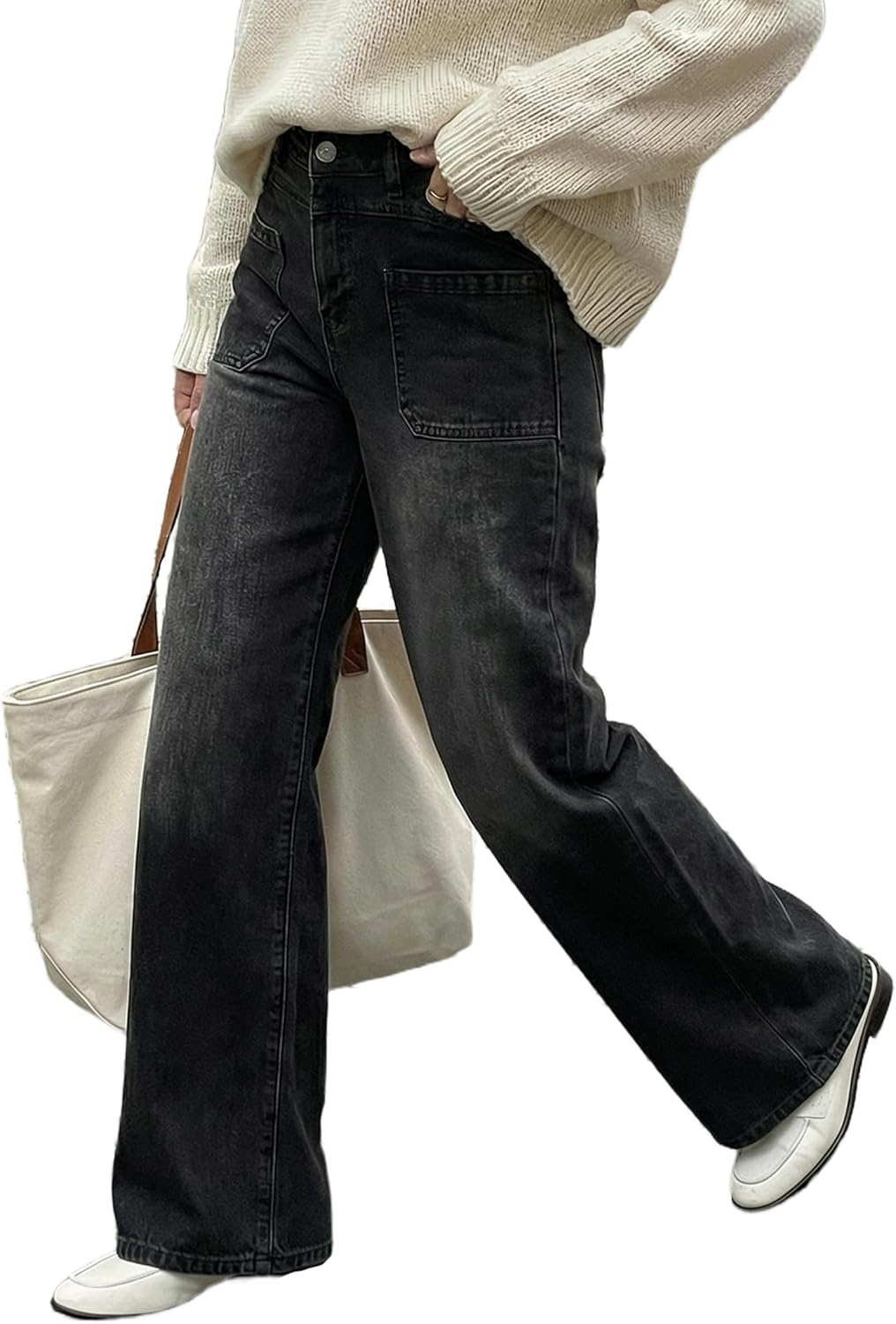 - Relaxed Fit: Wide-leg design a perfect length flatters all body types, elongates legs, and offers flexible and effortless movement.Front pocket details, high waisted with adjustable buttons and a horizontal seam at the waist, create a fashion-forward look.